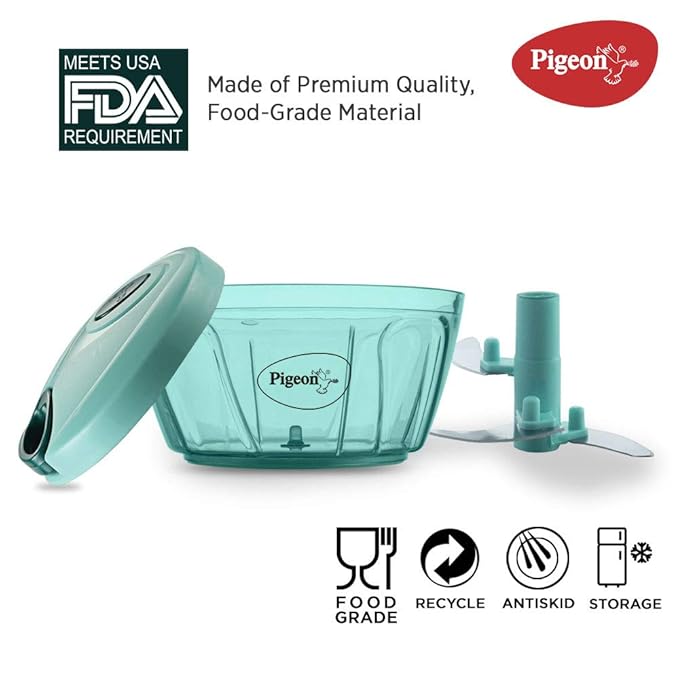 2. Pigeon Polypropylene Mini Handy and Compact Chopper with 3 Blades for Effortlessly Chopping Vegetables and Fruits for Your Kitchen (12420, Green, 400 ml)